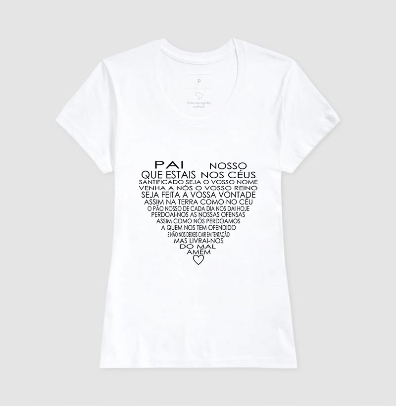 Vista sua fé com orgulho e conforto! A Camiseta Pai Nosso é perfeita para quem deseja expressar sua espiritualidade com elegância e simplicidade.