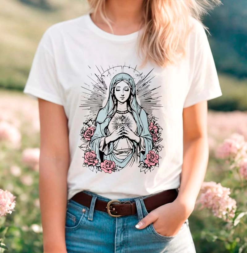 Camiseta Maria — Estilo que inspira fé e proteção