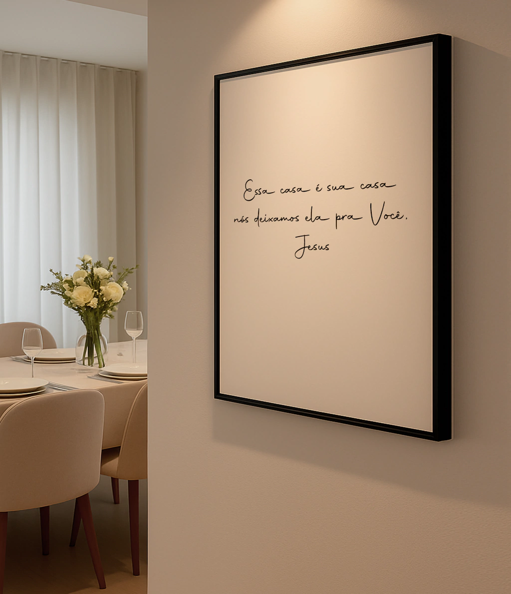 Dê um toque especial ao seu lar com esta obra que celebra a fé e a presença de Jesus em cada canto. Aproveite para presentear alguém especial ou renovar seu espaço com significado!